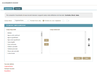 Schermata definizione tracciato importazione risorse